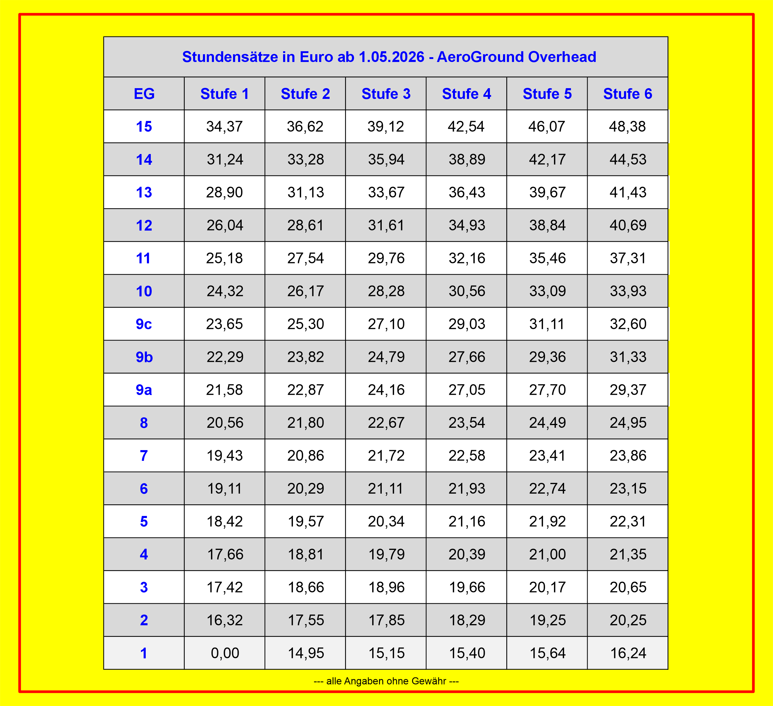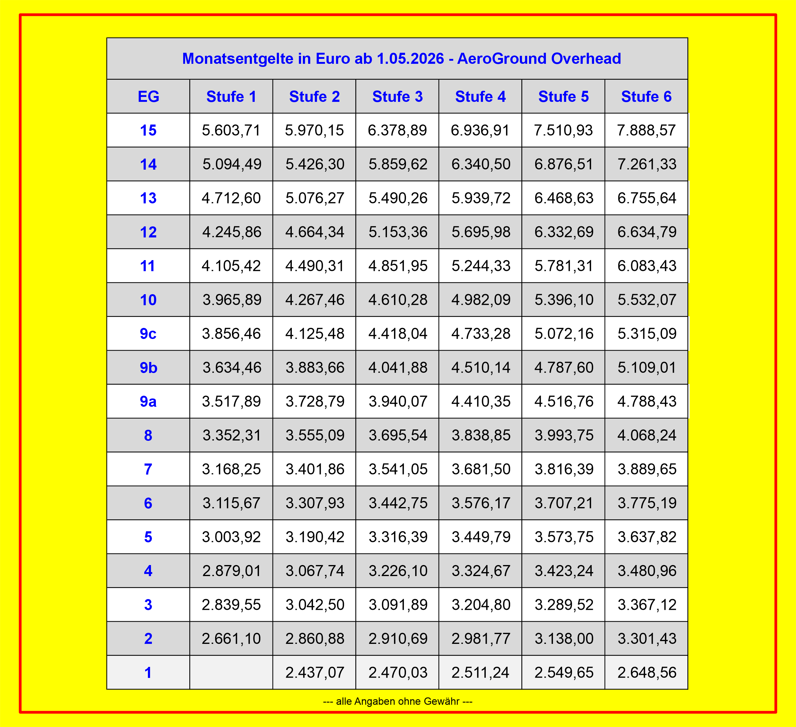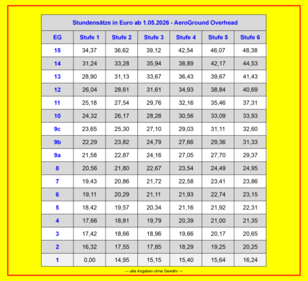 Entgelttabellen AE Overhead 01. Mai 2026