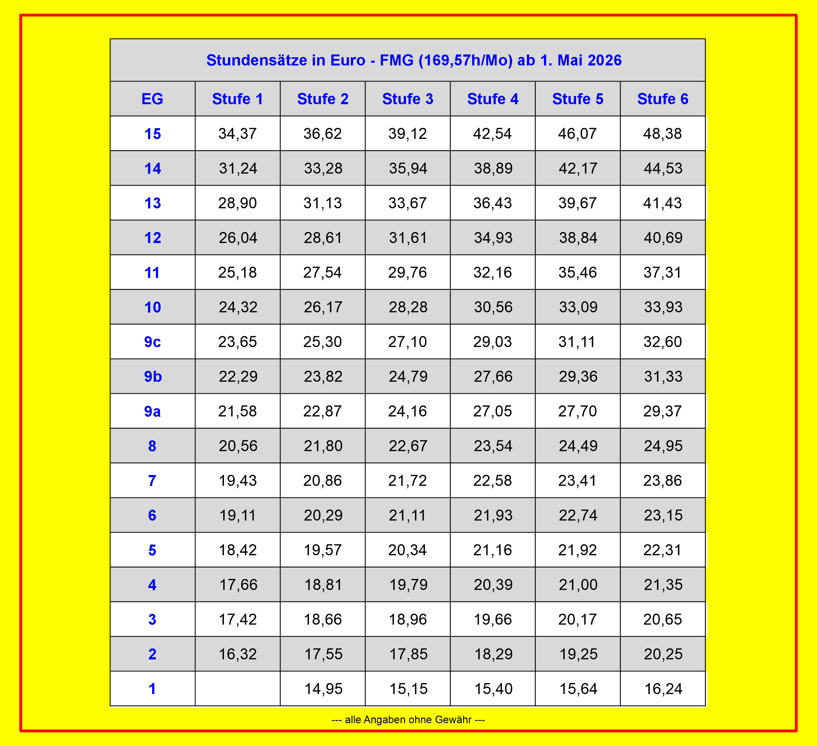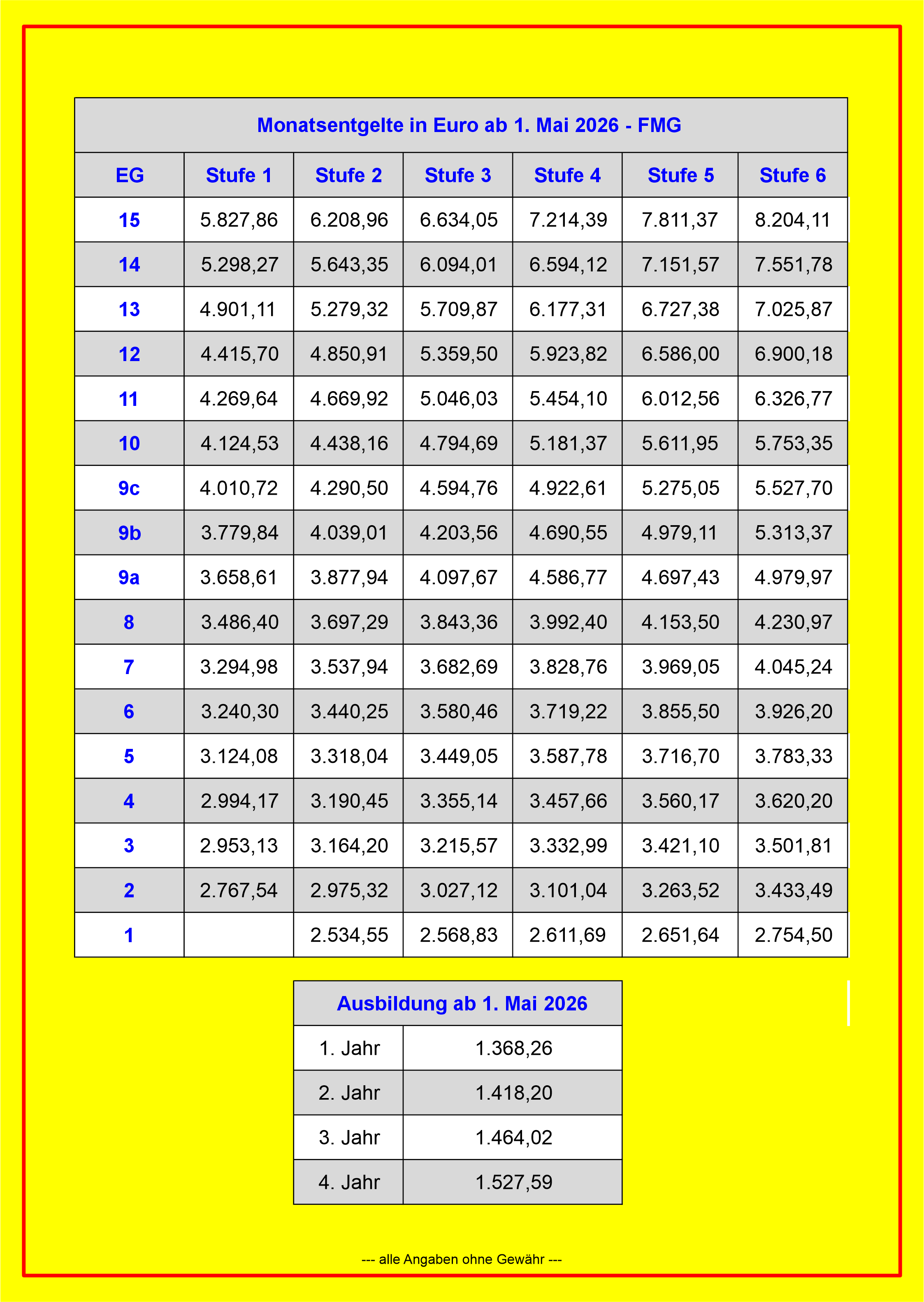 Entgelttabellen FMG ab 01. Mai 2026