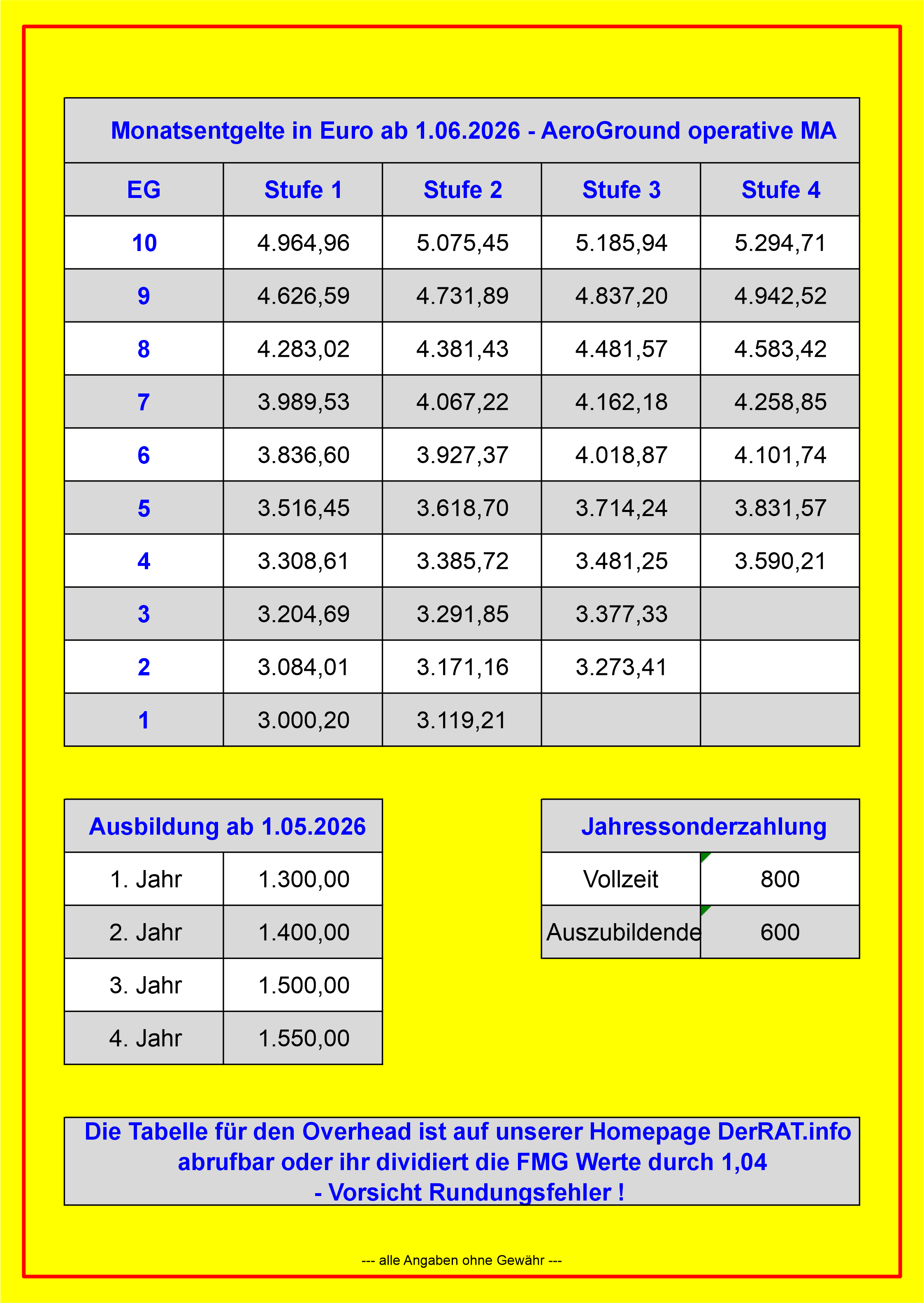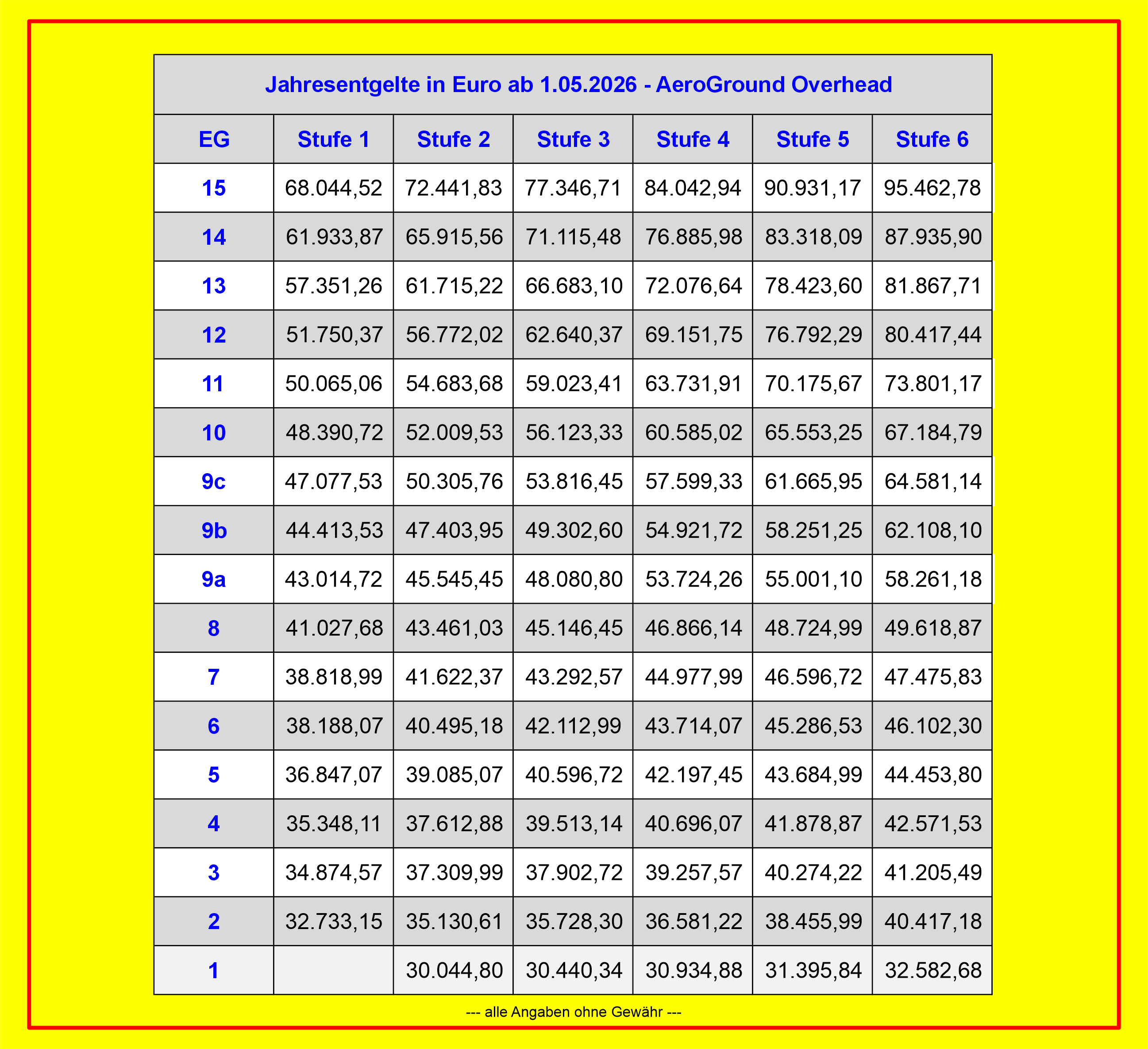 Entgelttabellen AE Overhead 01. Mai 2026