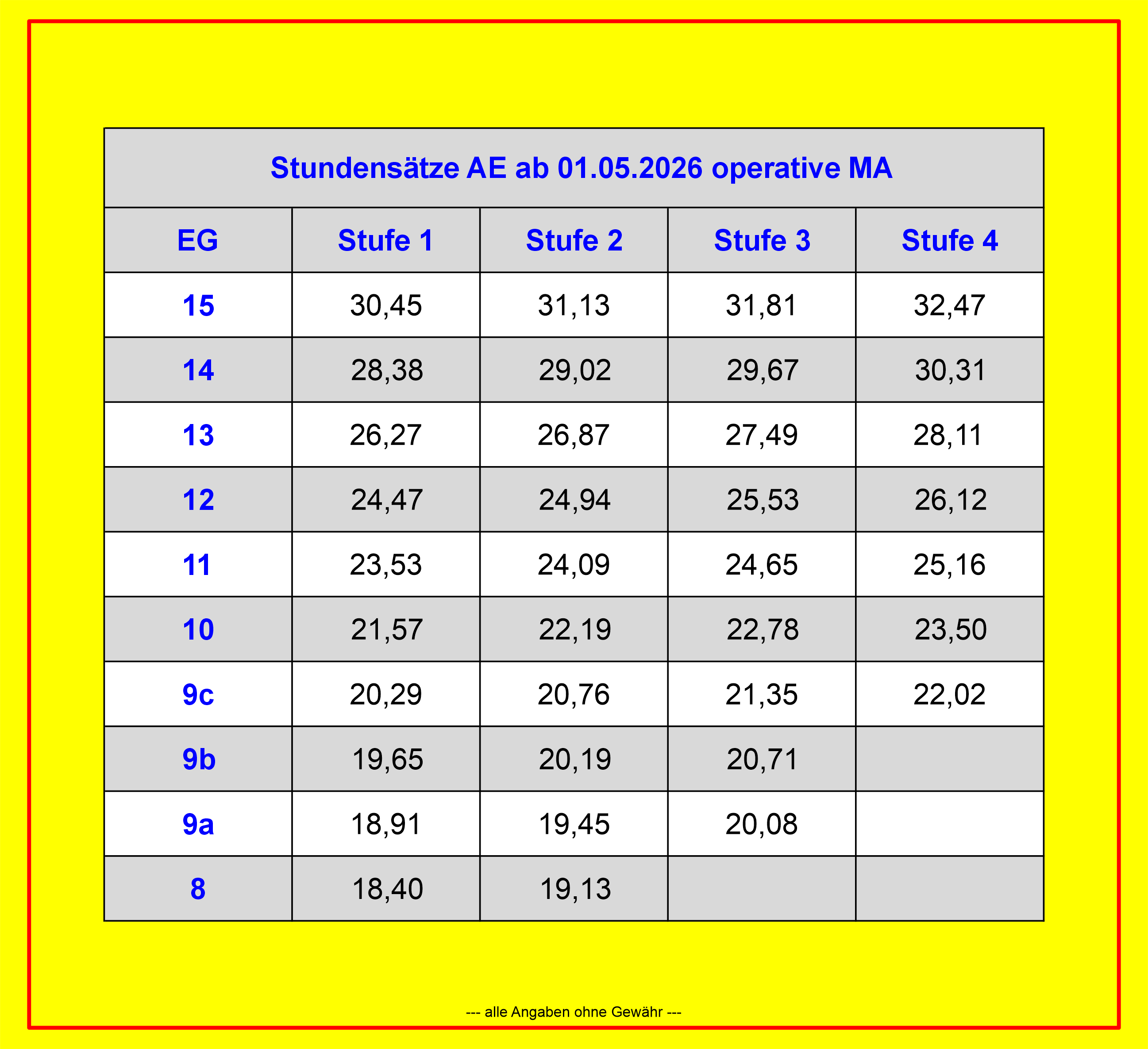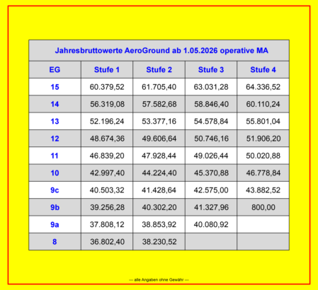 Entgelttabellen AE und alt GH ab 01. Mai 2026