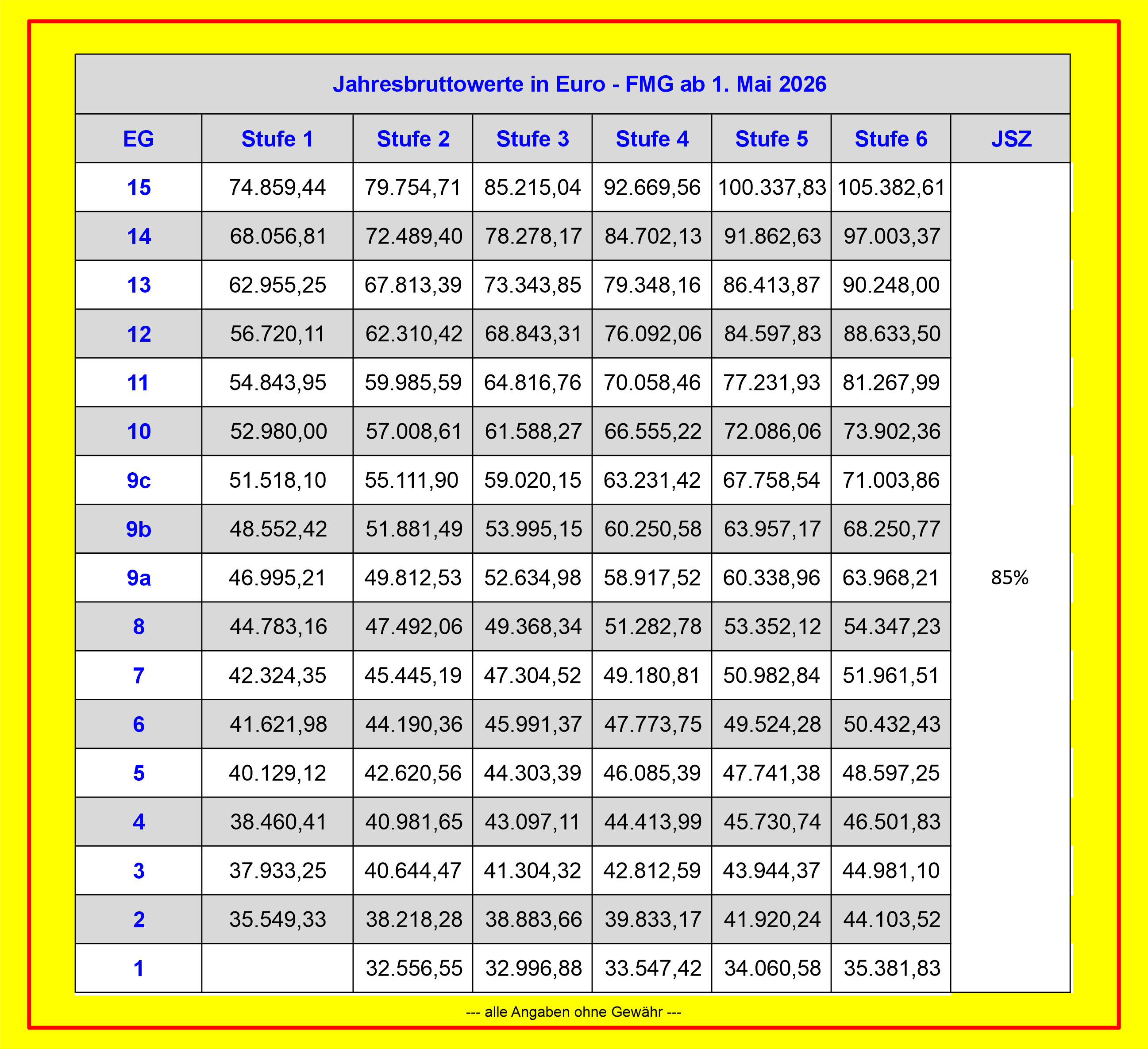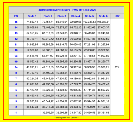 Entgelttabellen FMG ab 01. Mai 2026