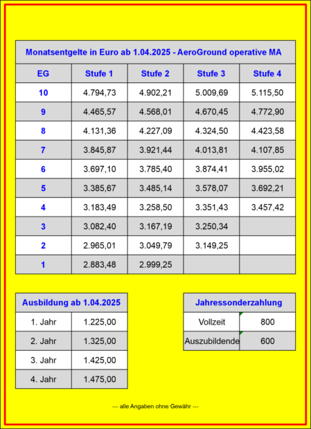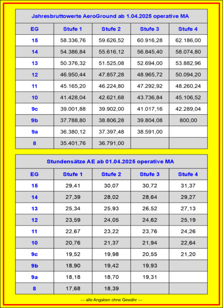 Entgelttabellen AE und alt GH ab 01. April 2025