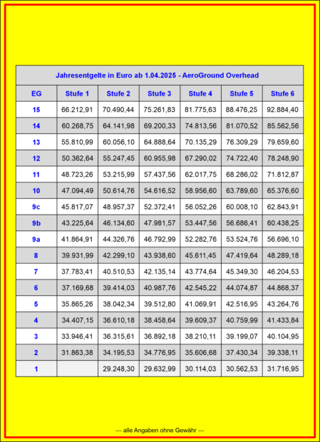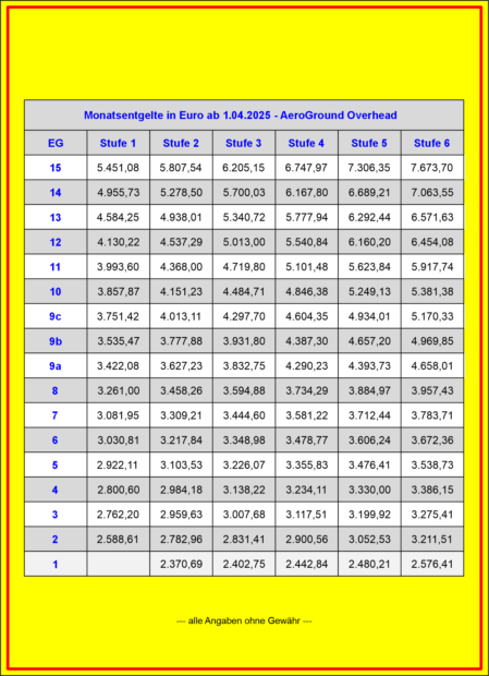 Entgelttabellen AE Overhead 01. April 2025