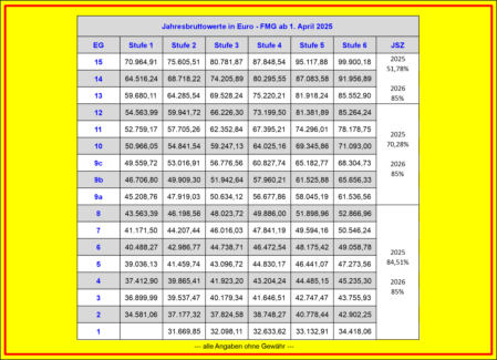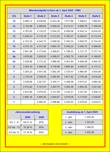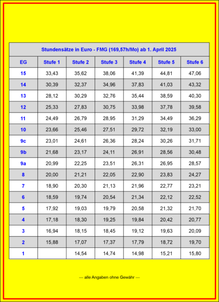 Entgelttabellen FMG ab 01. April 2025